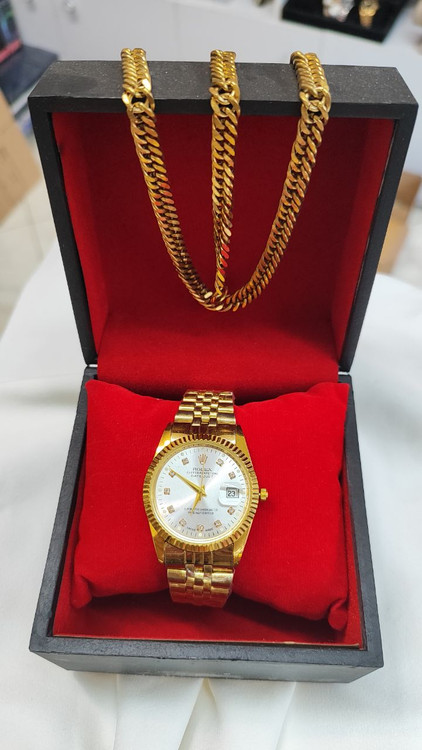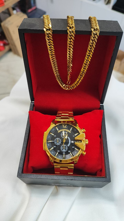 جعبه خارجی+ ساعت مردانه+ گردنبند و دستبند
